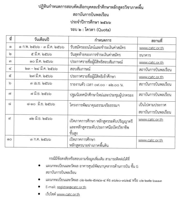 ปฎิทินกำหนดการสอบสถาบันการบินพลเรือน รอบ 3: โควต้า(QUOTA) 2566