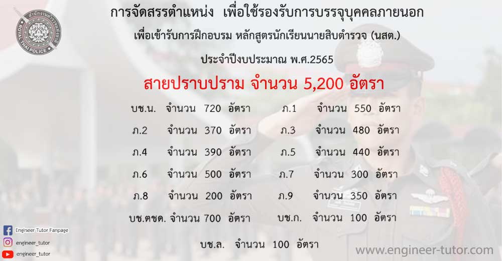 ประกาศนักเรียนนายสิบตำรวจ เรื่องการจัดสรรตำแหน่งเพื่อใช้รองรับการบรรจุบุคคลภายนอก ประจำปี 2565