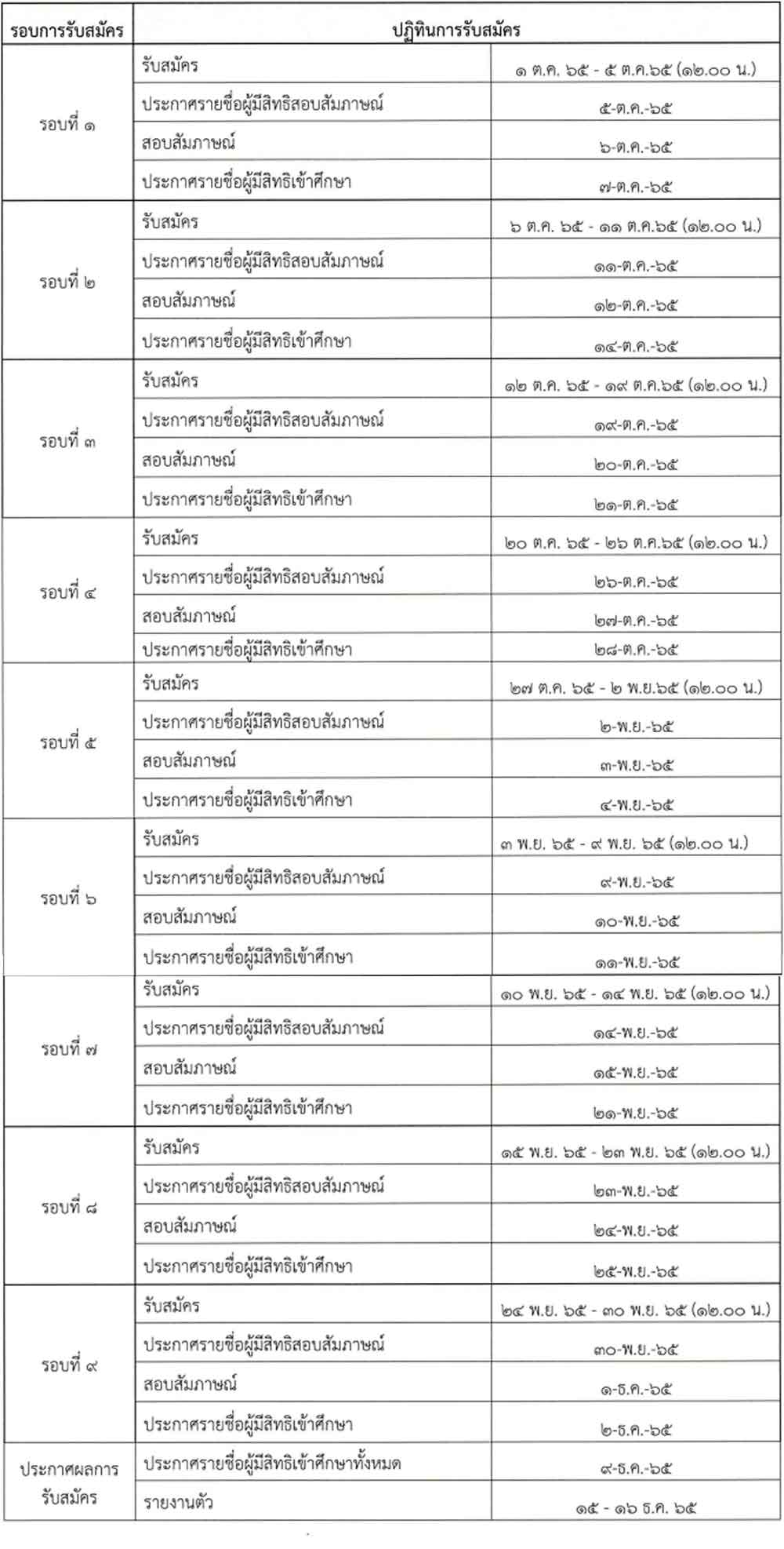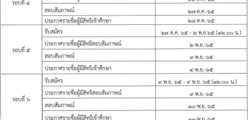 แบ่งตามรอบของผู้สมัคร ดังรายละเอียดในตารางนี้
